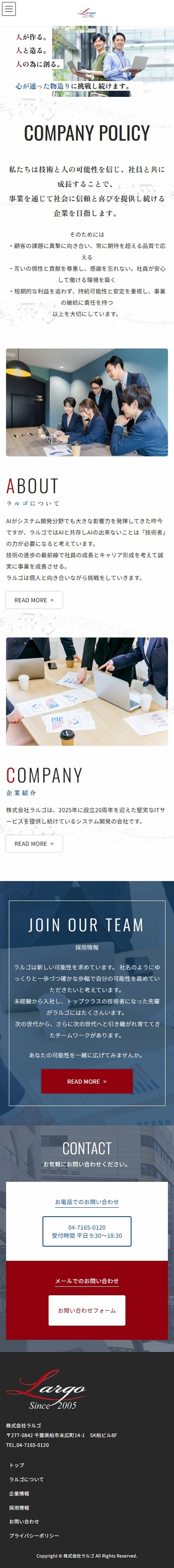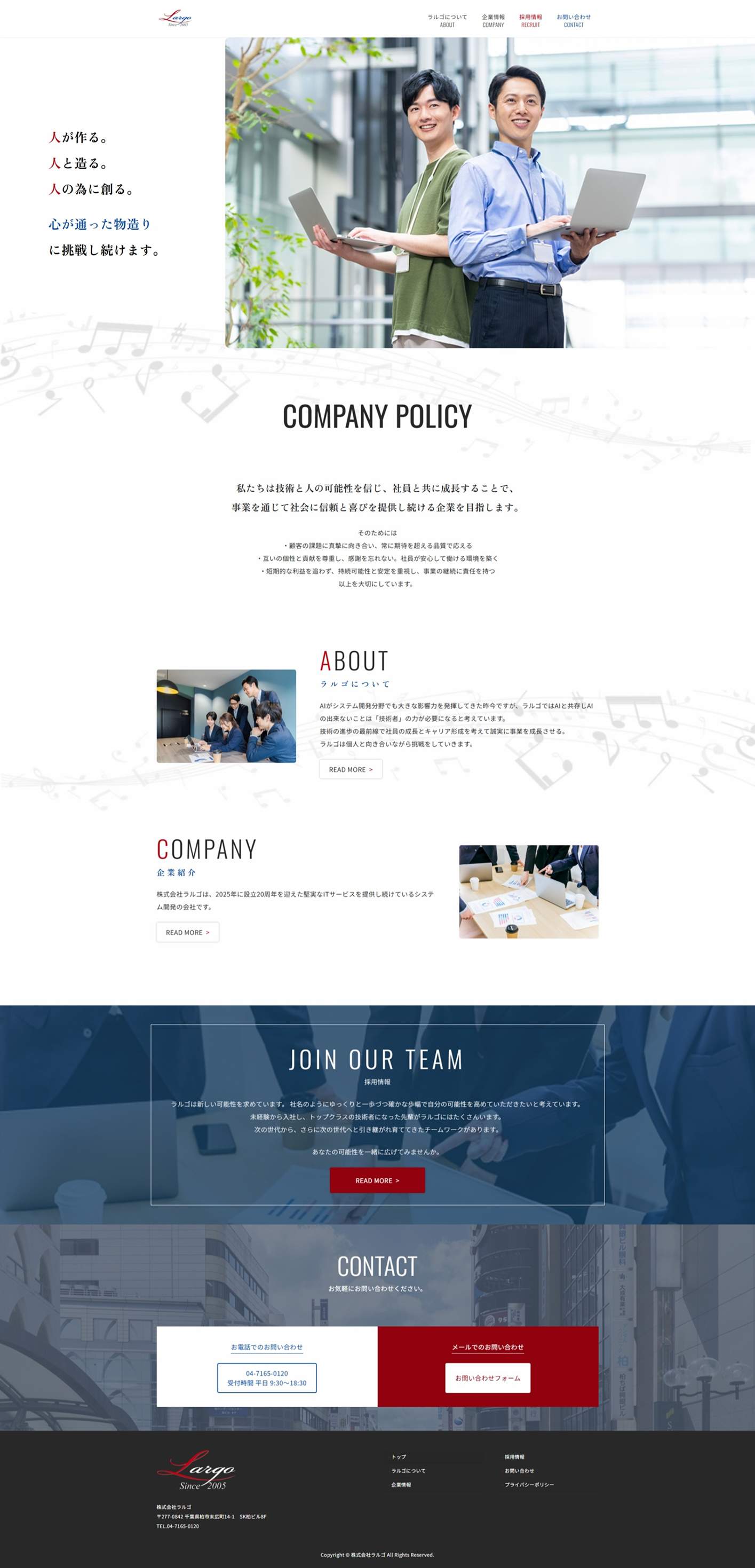 本社の移転を記念してホームページもリニューアル。社名のラルゴ(音楽用語で「ゆったりと・幅広く」という意味)にちなんでゆったりとしたテイストのデザインに。