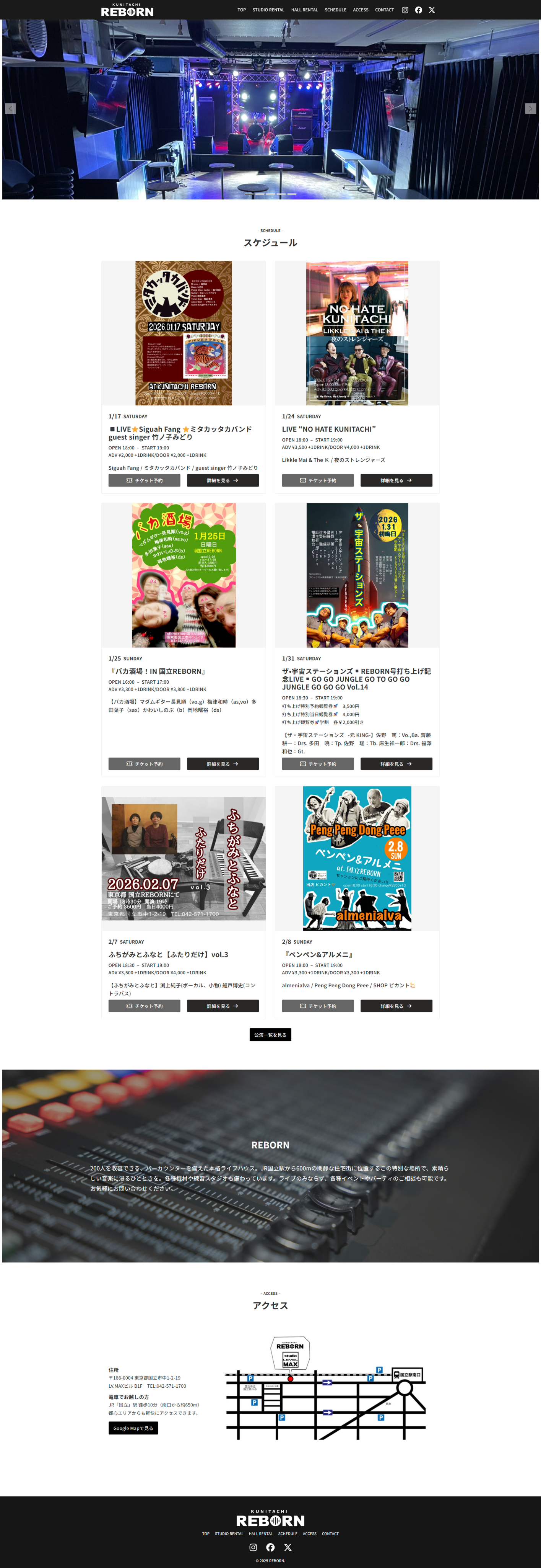 WordPressを導入することで、お客様ご自身でライブスケジュールの更新やテキスト・画像の変更が簡単にできる運用しやすいサイトを実現しました。このように、最低限の構成でスタートし、伴走型でサイトをアップデートしていくことも可能です。