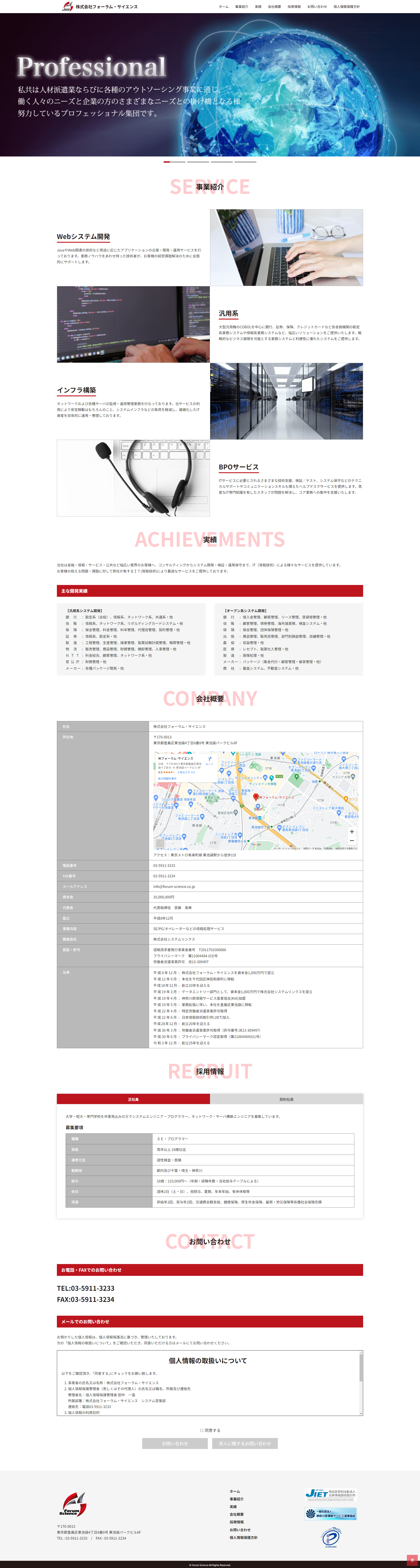 幅広い業界のお客様へIT(情報技術)による様々なサービスを提供されている、株式会社フォーラム・サイエンス様のコーポレートサイト制作を担当させていただきました。